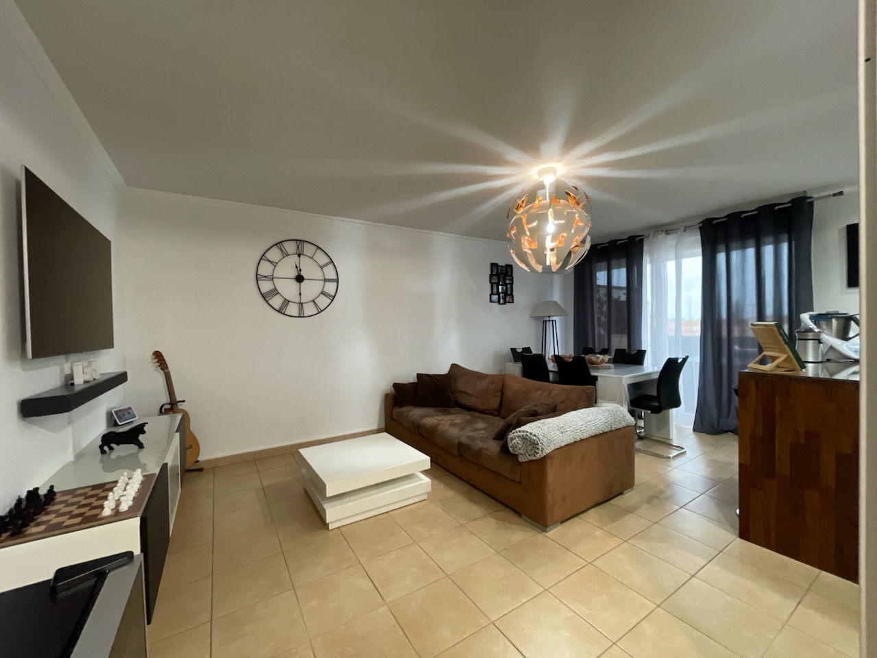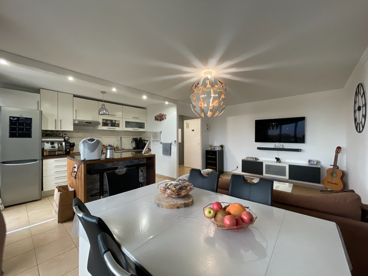 Composé d’une entrée, d’un salon salle à manger avec la cuisine ouverte équipée, 2 chambres avec placard aménagé, la salle d’eau.